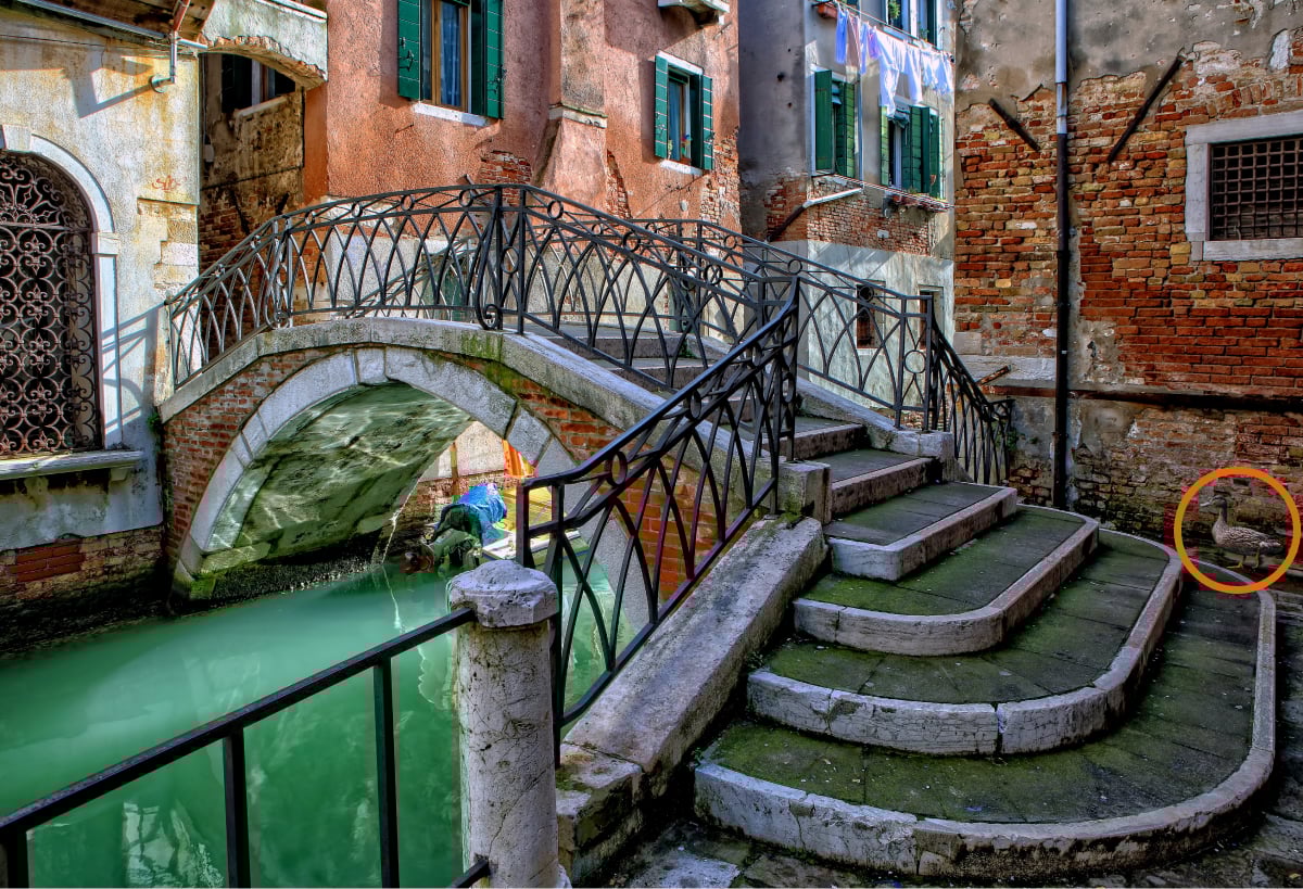 Du skal finde en and på et billede på 10 sekunder/ unsplash.com Hvis du ikke kan finde anden på billedet, er her et lille hint – se nøje på området nederst på trappen nær billedets højre kant.