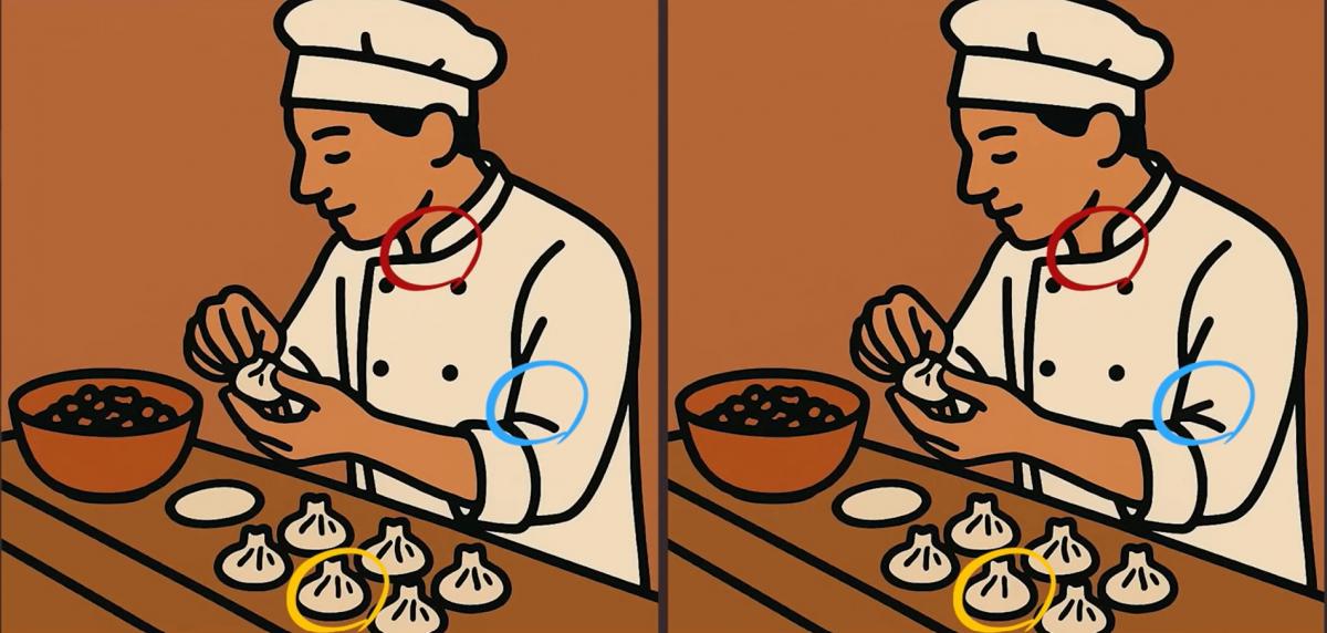 Så er du klar til den næste udfordring? Se nærmere på to billeder af en kok på arbejde. De ser måske ens ud ved første øjekast, men der gemmer sig 3 små forskelle i dem. Tror du, at du kan finde dem alle på 31 sekunder? Prøv det, og test din synsstyrke!
