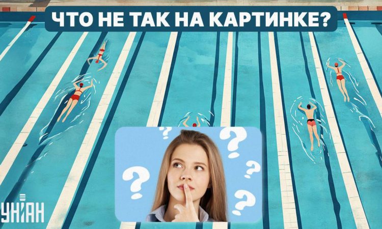 Nedenfor ser du et billede med en swimmingpool. Der er mennesker, som svømmer på banerne. Det ser ud til at være en almindelig dag, hvad er der så mærkeligt ved det! Men der er en lille nce, som “ødelægger” billedet. Du er nødt til at finde ud af, hvad det handler om.