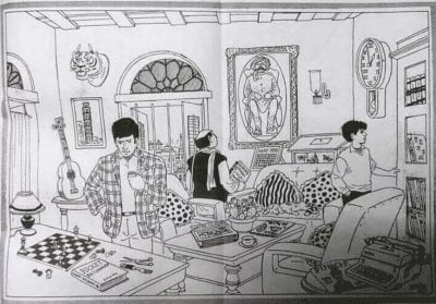 5. Den yngste person på billedet er drengen til højre. Han kigger i bøger. Men hvis du ser på hans skjorte, vil du bemærke, at der på den ene side er et langt ærme og på den anden side et trekvart ærme.